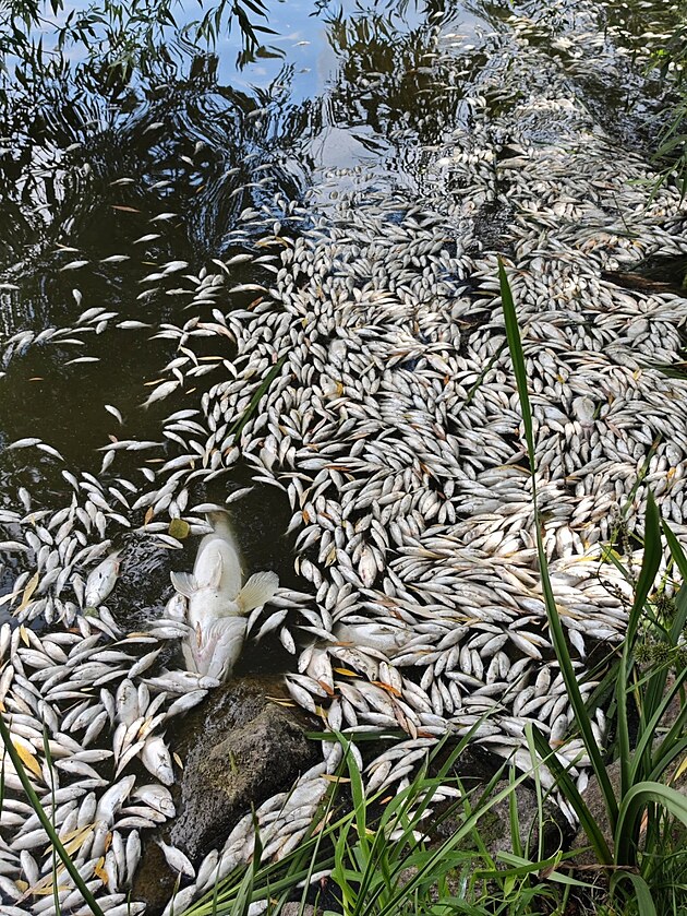 V Modlanské nádrži na Teplicku uhynuly tisíce ryb kvůli nedostatku kyslíku ve vodě, jakožto následku vysokých teplot. (29. června 2025)