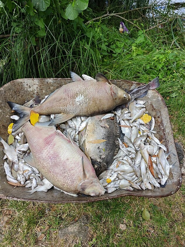 V Modlanské nádrži na Teplicku uhynuly tisíce ryb kvůli nedostatku kyslíku ve vodě, jakožto následku vysokých teplot. (29. června 2025)