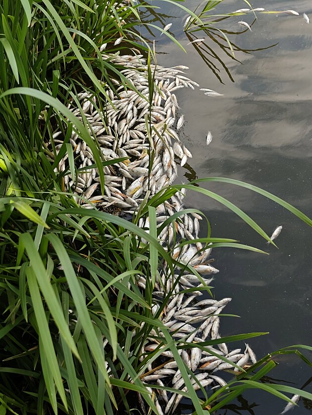 V Modlanské nádrži na Teplicku uhynuly tisíce ryb kvůli nedostatku kyslíku ve vodě, jakožto následku vysokých teplot. (29. června 2025)