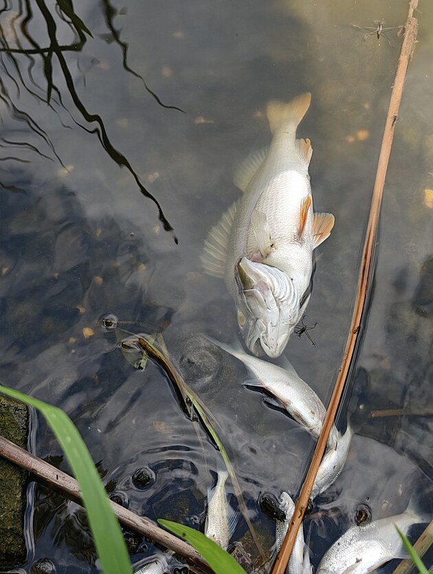 V Modlanské nádrži na Teplicku uhynuly tisíce ryb kvůli nedostatku kyslíku ve vodě, jakožto následku vysokých teplot. (29. června 2025)