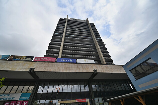Mrakodrap SaS group Tower v centru Mostu. Podle oficiálních zdrojů je vysoký 96 metrů. (duben 2025)