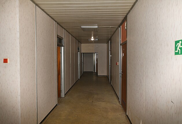 Některá patra mosteckého mrakodrapu SaS group Tower jsou stále původní. Třeba patro dvacáté. (duben 2025)
