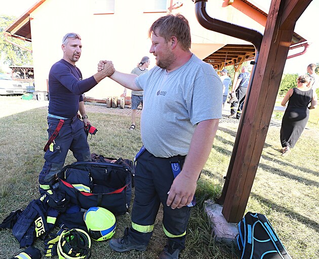 Požár Národního parku České Švýcarsko. Hasiči mají zázemí na fotbalovém hřišti. (5. srpna 2022)