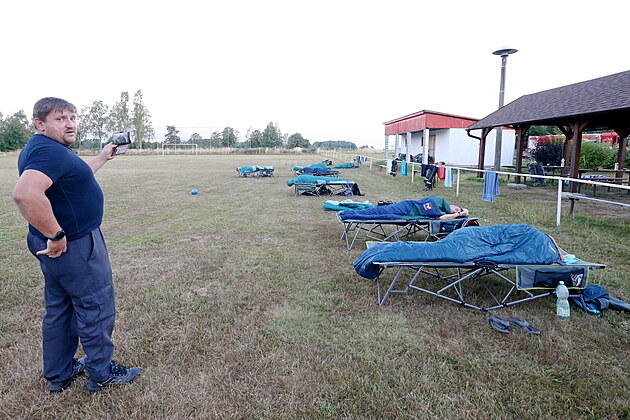Požár Národního parku České Švýcarsko. Hasiči mají zázemí na fotbalovém hřišti. (5. srpna 2022)