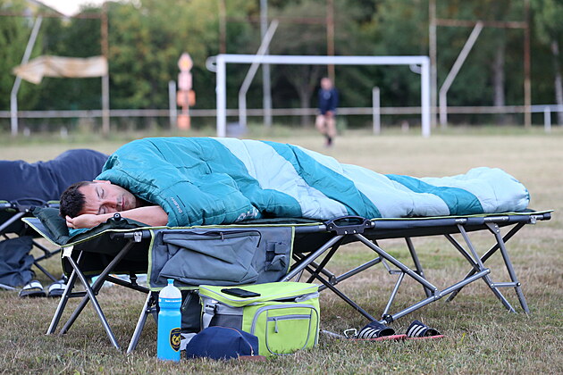 Požár Národního parku České Švýcarsko. Hasiči mají zázemí na fotbalovém hřišti. (5. srpna 2022)