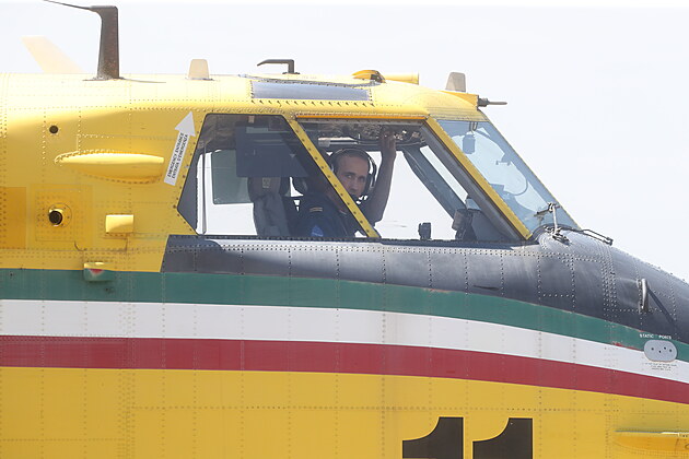 Na letiště Vodochody kolem poledne dorazila z Itálie dvě letadla Canadair. (5. srpna 2022)
