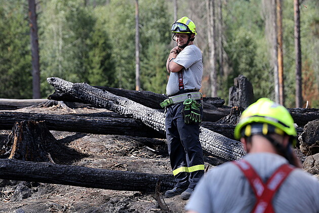 Požár Národního parku České Švýcarsko - shořelý les nad Dlouhým vrchem poblíž obce Růžová na Děčínsku (9. srpna 2022)