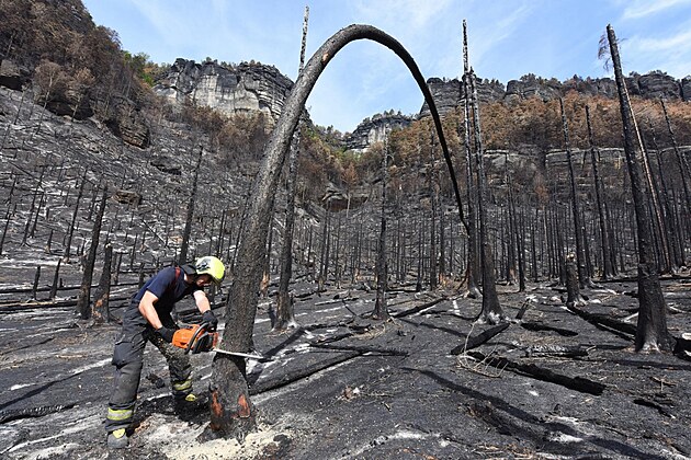 Plocha požáru v Národním parku České Švýcarsko se zmenšila na 154 hektarů. (8. srpna 2022)