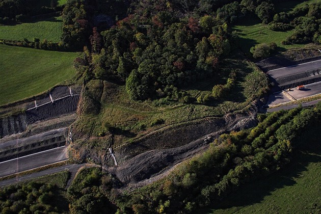 „Nyní se u uklízeného sesuvu potichu provádí podél dálnice dodatečná armovaná pilotáž. Tady se ovšem musí okamžitě začít stabilizovat celé skoro tři kilometry úseku dálnice a stovky metrů šíře okolo. A to bude stát další miliardy korun,“ říká.