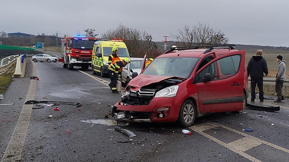 Nehoda dvou aut u Chlumčan na Lounsku (13. prosince 2025)