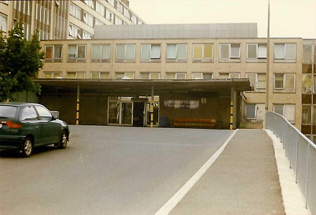 Budova B (centrální příjem) mostecké nemocnice na historickém snímku