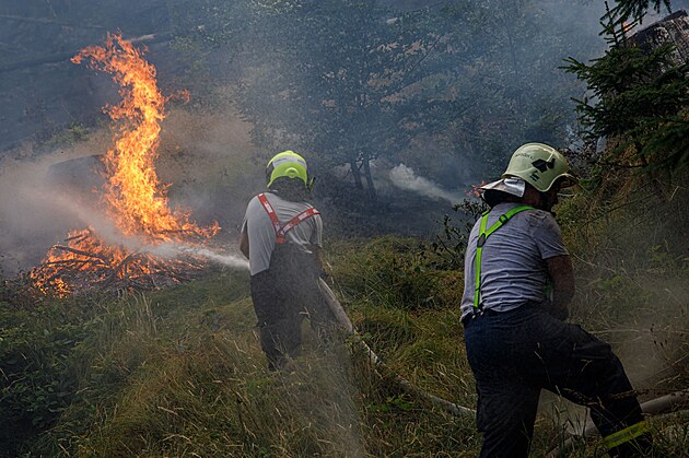 První týden hašení požáru v národním parku České Švýcarsko (konec července 2022)