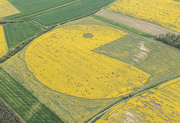 Symbol ze známé počítačové hry Pacman, v níž má žluté kolečko za úkol všechny sníst, se v poli v Rovném na Litoměřicku v blízkosti hory Říp objevil loni v květnu.