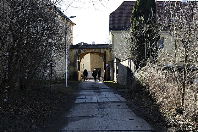 Zámecký park v Peruci. Je pro místní důležitým průchozím bodem a nachází se zde také obecní školka. (březen 2025)