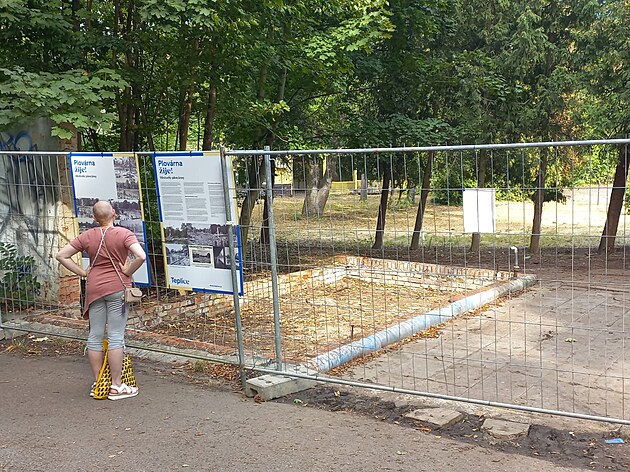Vstup do bývalého areálu koupaliště nechala radnice před několika dny zbořit. (1. září 2025)