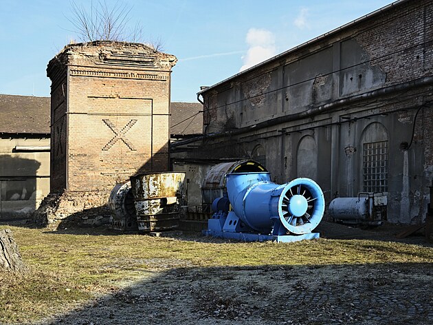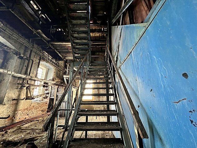 Útroby těžní věže v areálu Podkrušnohorského technického muzea. Po opravě se zpřístupní návštěvníkům. (březen 2025)