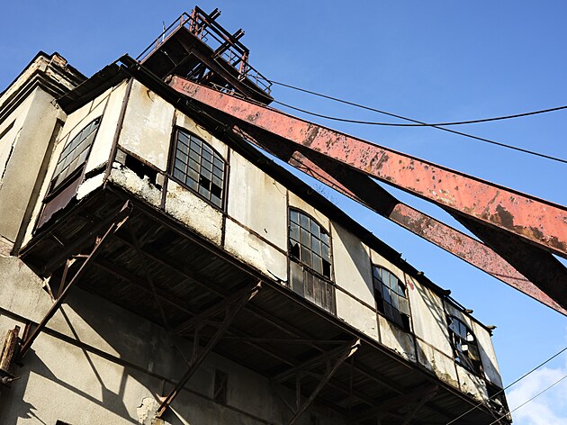 Těžní věž v areálu Podkrušnohorského technického muzea. Po opravě se zpřístupní návštěvníkům. (březen 2025)