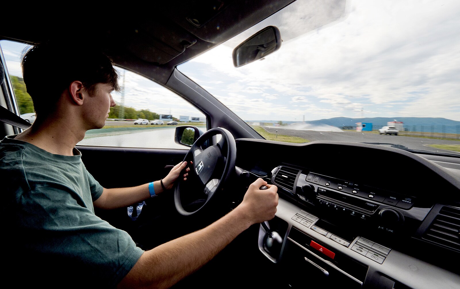 „Upřímně, smyky byly těžké, občas i nepříjemné. Vystihnout v krátkém okamžiku, jakým směrem se auto stáčí a jakým ho narovnat, byla fuška. Zatočím volantem víc a mám smyk na druhou stranu,“ líčí Michal, čerstvý maturant.