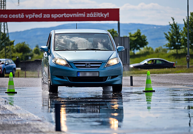 Výcvik účastníků Kurzu for TEEN na polygonu mosteckého autodromu. Řadu věcí se mladí lidé v autoškole nedozvědí. A hlavně si je tam nevyzkoušejí. Jako třeba krizové brzdění