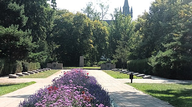 Současný pohled na pomník vojákům Rudé armády v Teplicích. (18. srpna 2025)