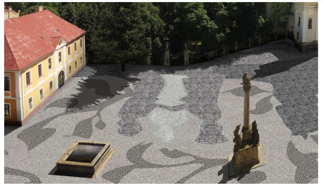 Pomocí různobarevné dlažby budou na náměstí ztvárněny siluety tří postav – knížete Oldřicha, dívky Boženy a kněze. Půjde o výjev Oldřichovy a Boženiny svatby na břehu řeky.