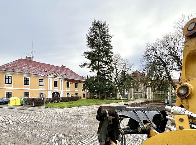 V Postoloprtech na Lounsku pokáceli jedli, kterou tu desítky let zdobili jako vánoční strom. (14. listopadu 2024)