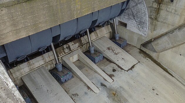 Krajní přelivná pole ovládá hydraulika.