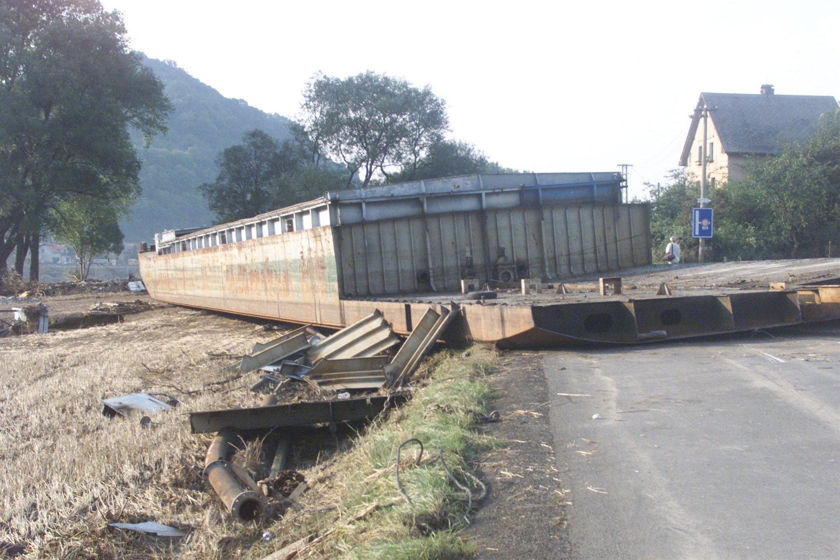 Labe si při povodních v roce 2002 s mnohými loděmi dělalo, co chtělo. Tato zůstala po opadnutí vody stát v Těchlovicích na silnici mezi Ústím a Děčínem.