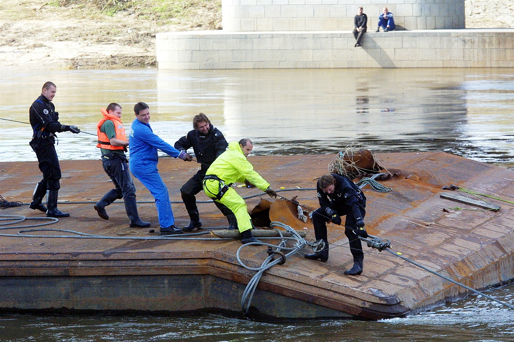 Pi povodních v roce 2002 hrozilo, že nákladní loď, která se utrhla v Ústí, zboří Tyršův most v Děčíně. Proto ji bylo potřeba odpálit a potopit.