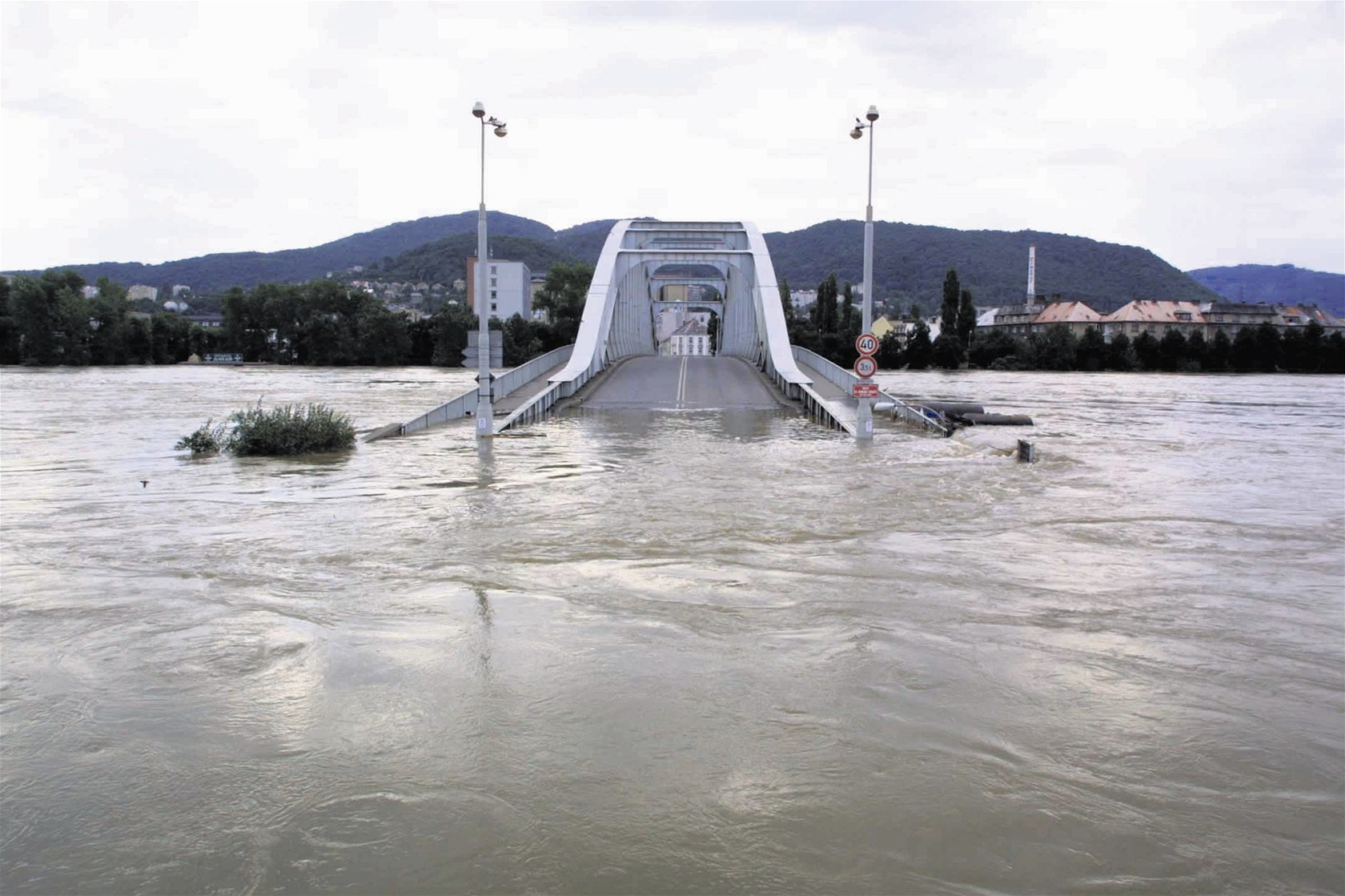 Benešův most v Ústí nad Labem při povodních v roce 2002