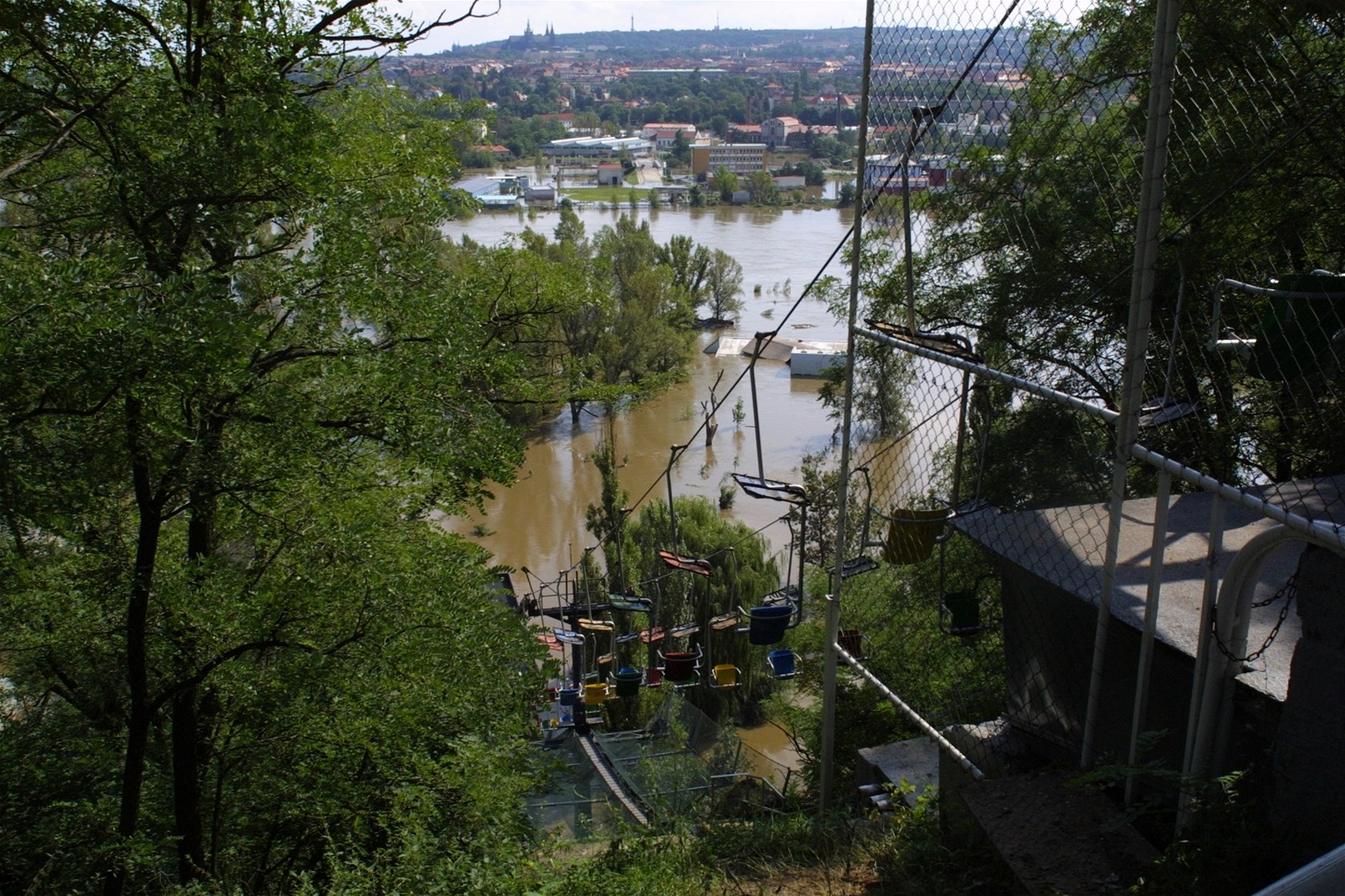 Povodně 2002 v pražské zoo - lanovka