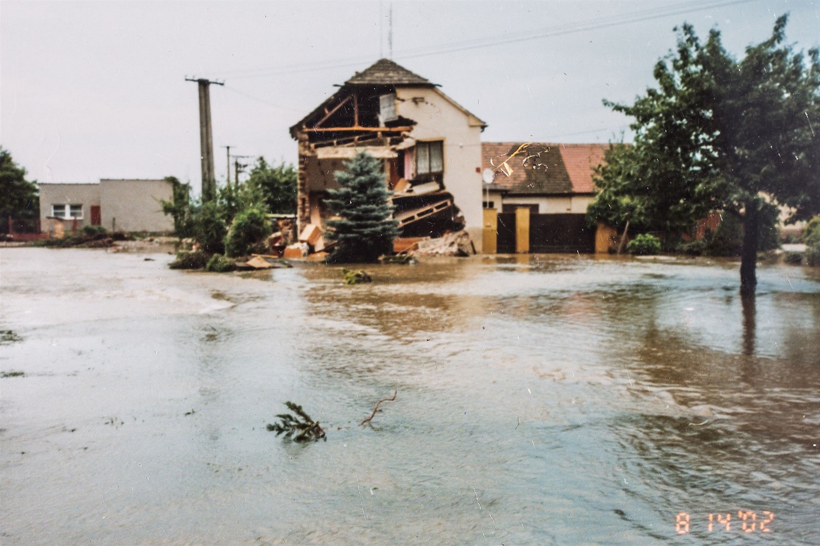 Povodně - 20 let poté. Fotky podle starších snímků. Pondělí, 8. srpna, 2002.