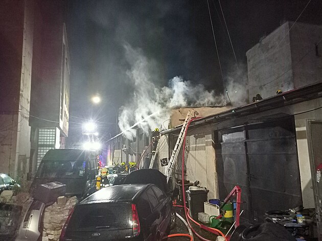 Požár autoservisu v Krásném Březně v Ústí nad Labem (20. prosince 2024)