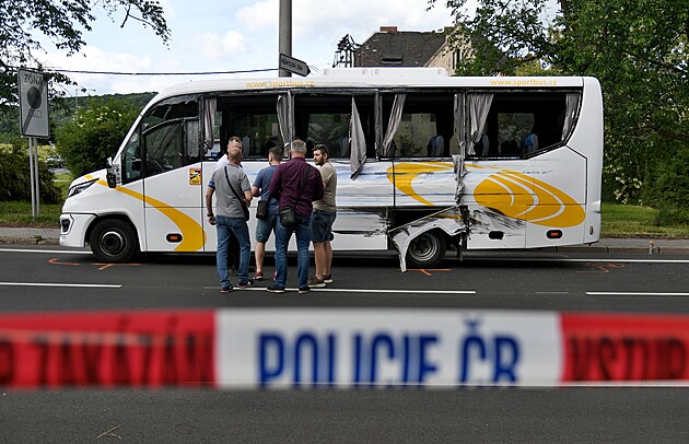 Ve čtvrti Předlice v Ústí nad Labem došlo k nehodě kamionu a menšího autobusu. Řidič kamionu z místa ujel. (29. května 2025)