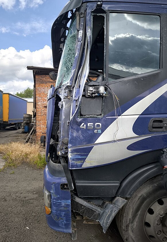 Takto dopadl kamion po srážce s minibusem v Ústí nad Labem. (29. května 2025)