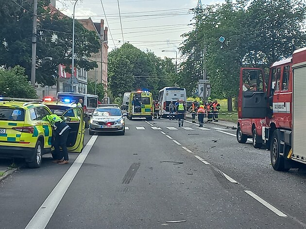 V Ústí nad Labem došlo k nehodě nákladního auta a menšího autobusu. (29. května 2025)