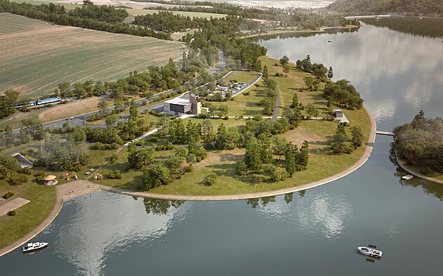 Takto má vypadat vodní nádrž Kryry. Vznikne na Podvineckém potoce mezi městem Kryry a obcí Petrohrad a zabere území, kde jsou nyní pole, chmelnice a několik staveb.