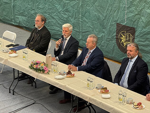 Návštěvu Ústeckého kraje zahájil prezident Petr Pavel debatou se studenty Střední lesnické školy a Střední odborné školy. (14. října 2025)