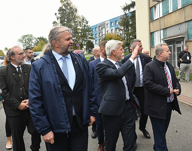 Prezident Petr Pavel se ve Šluknově prošel sídlištěm, které je sociálně vyloučenou lokalitou. (14. října 2025)