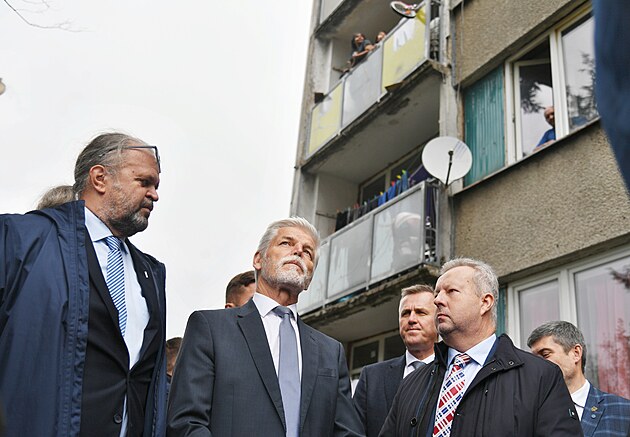 Prezident Petr Pavel se ve Šluknově prošel sídlištěm, které je sociálně vyloučenou lokalitou. (14. října 2025)