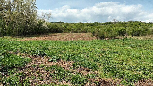 Místo, kde bude stát památník věnovaný tisícovkám zotročených vězňů, kteří za 2. světové války zahynuli v továrně Richard. (duben 2025)