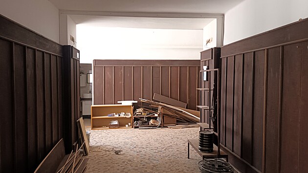 Interiér budovy chátrajícího kina Sokol v Roudnici nad Labem (srpen 2025)