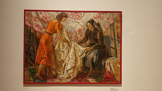 Julie Merezová Winterová (1893–1980) – Mladá žena a prodavačka krajek, 1930 – olej, plátno