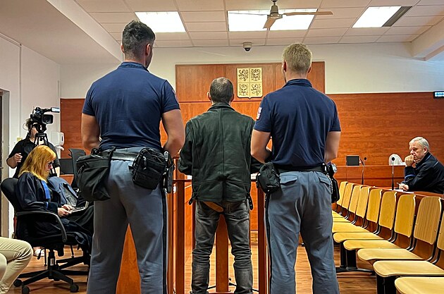 Muž, jenž podle obžaloby v Domaslavicích na Teplicku zavraždil svého pětiletého syna, otce a málem také svoji matku, při hlavním líčení u Krajského soudu v Ústí nad Labem. (13. srpna 2025)