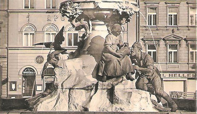 Kašna, jejímž autorem je vídeňský sochař Rudolf Weyr, byla na děčínském náměstí postavena roku 1907. Námětem pro její výzdobu se stala pověst o Loubském prameni, která se odehrává na vrchu Kvádrberk. V roce 1940 ale Němci sochy zabavili a od té doby je kašna bez nich.