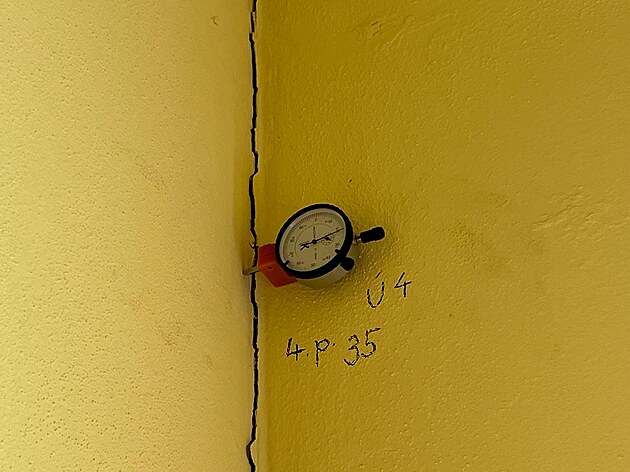 Čidlo na chodbě v části domu, která nebyla evakuována. (srpen 2025)