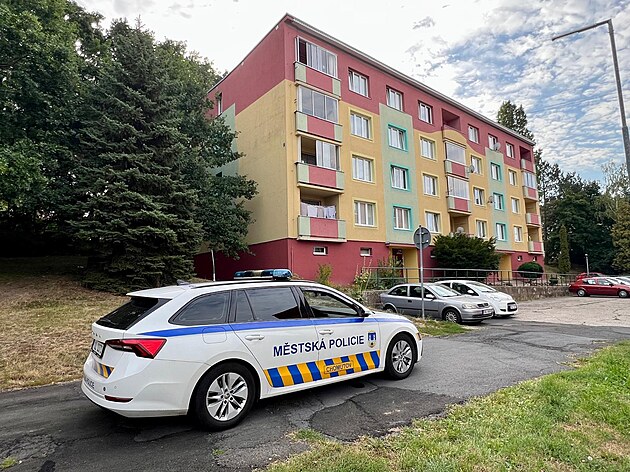 Dům v Čelakovského ulici v Chomutově, kde došlo k evakuaci lidí kvůli narušené statice. (28. srpna 2025)