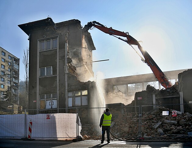 Demolice budovy Vrbenského lázní v Ústí nad Labem (6. března 2025)