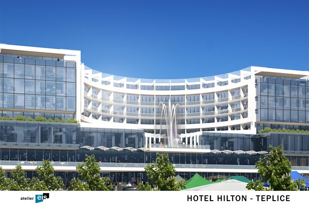 Vizualizace hotelu Hilton v Teplicích, který plánuje developer Jaroslav Třešňák. Otázka je, jak nakonec bude projekt vypadat. Hilton má ovšem podmínku – pokojů musí být 210.