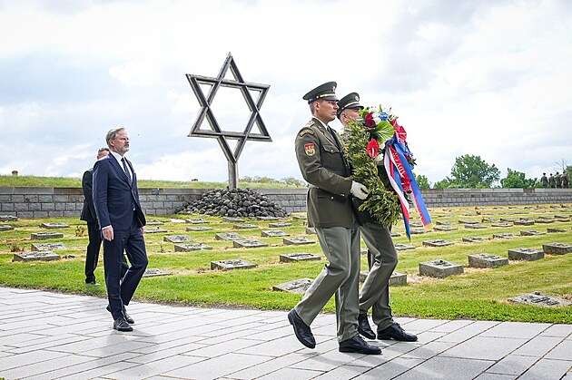 Premiér Petr Fiala se zúčastnil pietního aktu v Terezíně. (18. května 2025)